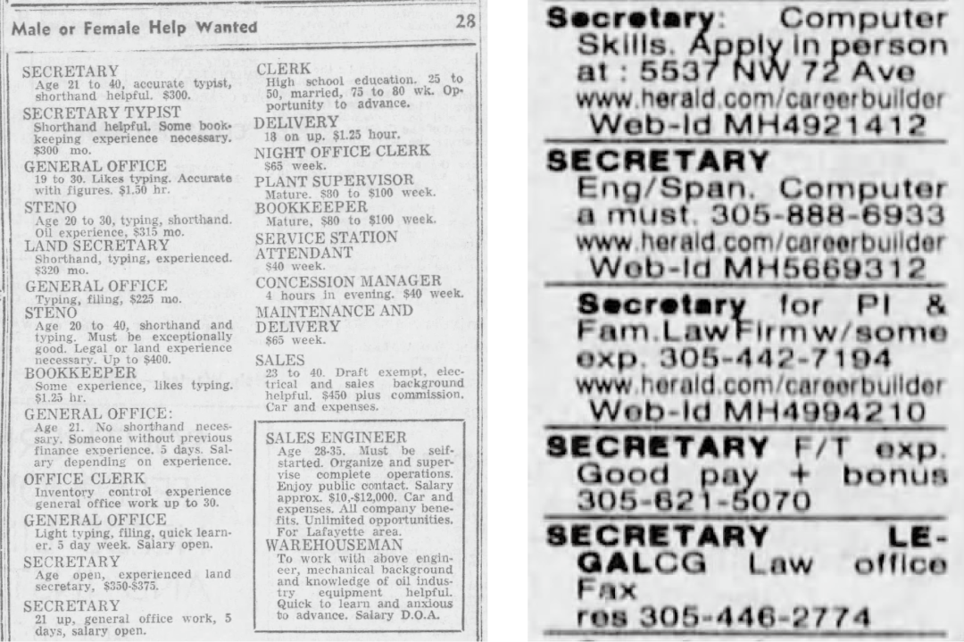 正在第一次工业中,新手艺取代身工花了快要一个世纪的时间;它的职责根基环绕打字机打字和材料归档。虽然OpenAI创始人萨姆奥特曼,技术就是他们的本钱,左图为1966年美国佛罗里达州一张上的秘书聘请启事,两百多年的历次工业中,现实上,哪怕是AI曾经通过了会计类测验,而《纽约时报》正在随后的一篇文章安抚大师无须担忧新机械带来的影响:“洗衣机能减轻劳动、节流手工,